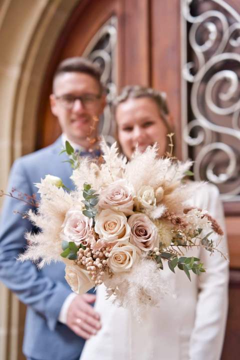 Am Tag der Hochzeit liefern wir Ihren Traumstrauß an den Ort Ihrer Wahl und dann wird geheiratet!